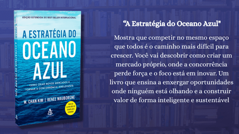Ler A Estratégia do Oceano Azul é entender que não vale a pena brigar por espaço onde todo mundo já está. O livro mostra como pensar diferente, encontrar novas ideias e criar o seu próprio mercado. É uma leitura leve, direta e cheia de exemplos que fazem você enxergar que sempre existe outro caminho pra crescer.